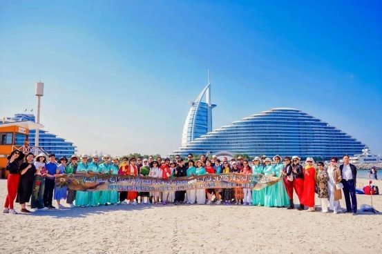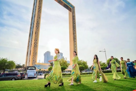在持续七天的交流行程中,代表团还走访了朱美拉清真寺、谢赫扎耶德清真寺、阿布扎比民俗村、Dubai Mall、世界最高楼哈利法塔、纯金像框 、人造棕榈岛等地,并在多个迪拜地标进行了快闪走秀与文化互动。此次活动不仅是一次视觉与艺术的盛宴,更搭建起中阿文化交流的桥梁,为“文化出海”战略注入新的活力。