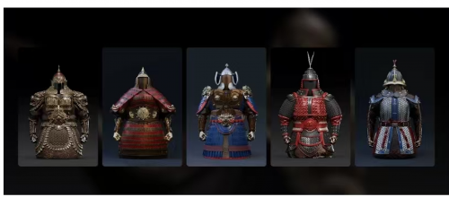 他的作品《将魂·甲胄烟斗》系列提取了中国汉、唐、宋、元、明五大王朝中五位杰出军事将领的铠甲元素。