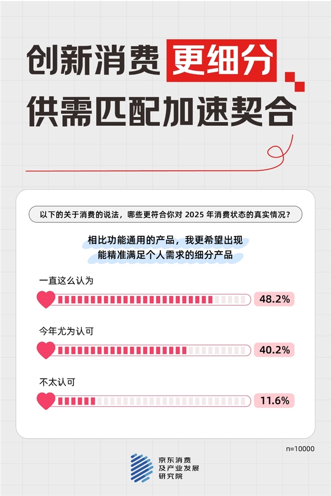 在“以新需求引领新供给”的政策导向下,2025年新品开发从“大而全”转向“小而准”。在需求端,万人调研中,有88.4% 人在2025年“希望出现更多精准满足个人需求的细分产品”;在供给端,C2M反向定制蓬勃发展,大家的细分需求被更多精准定制的新品更快满足。京东数据显示,2025 年双11期间,3C 数码整体C2M 成交额同比超50%,游戏本超半数为定制款。三筒洗衣机、长周期血糖仪、适老化家电、经期管理手表等场景化新品落地即热销。品牌和用户走的更近,通过直播、社交平台直连用户,将大家的“许愿”转化为爆品。这种“需求倒逼创新”的模式缩短了产品上市周期,彰显了供需适配效率的全面提升。