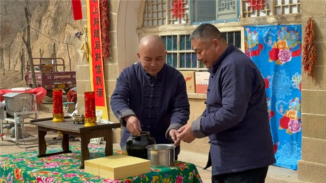 唢呐从窑洞顶响起,吹奏者背对院落、面向沟壑。苍茫的声浪向高原宣告:今天,这孔窑洞里,要为两个兄弟的情义,办一场典礼。