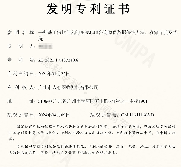 如何守住心理咨询服务的隐私安全,是整个心理行业必须回答的时代命题。近期,国内专业心理咨询平台壹心理凭借在用户隐私安全技术领域的持续创新与突破,其自主研发的两项隐私保护技术已获发明专利证书,旨在通过技术手段提升心理咨询过程中的隐私保护能力,切实筑牢心理健康服务的安全防线,推动心理服务行业隐私安全规范化发展。