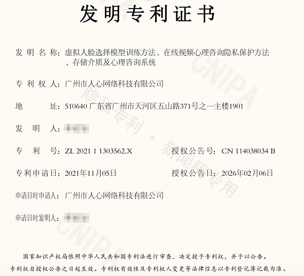十五年的专业积淀,使得壹心理在服务品质与技术标准上形成了双重优势。此次两项发明专利证书的获得,不仅是壹心理技术研发能力的体现,还展示了壹心理主动强化咨询隐私边界的决心与能力。